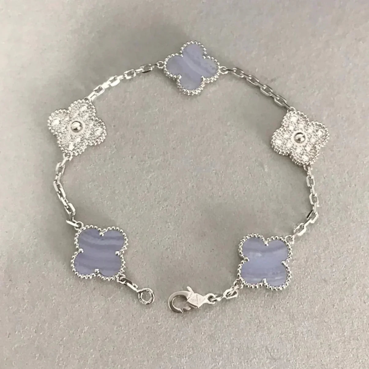 [LUXE NOBLE] CLOVER 5 MOTIF PURPLE CHALCEDONY BRACELET COLLECTION