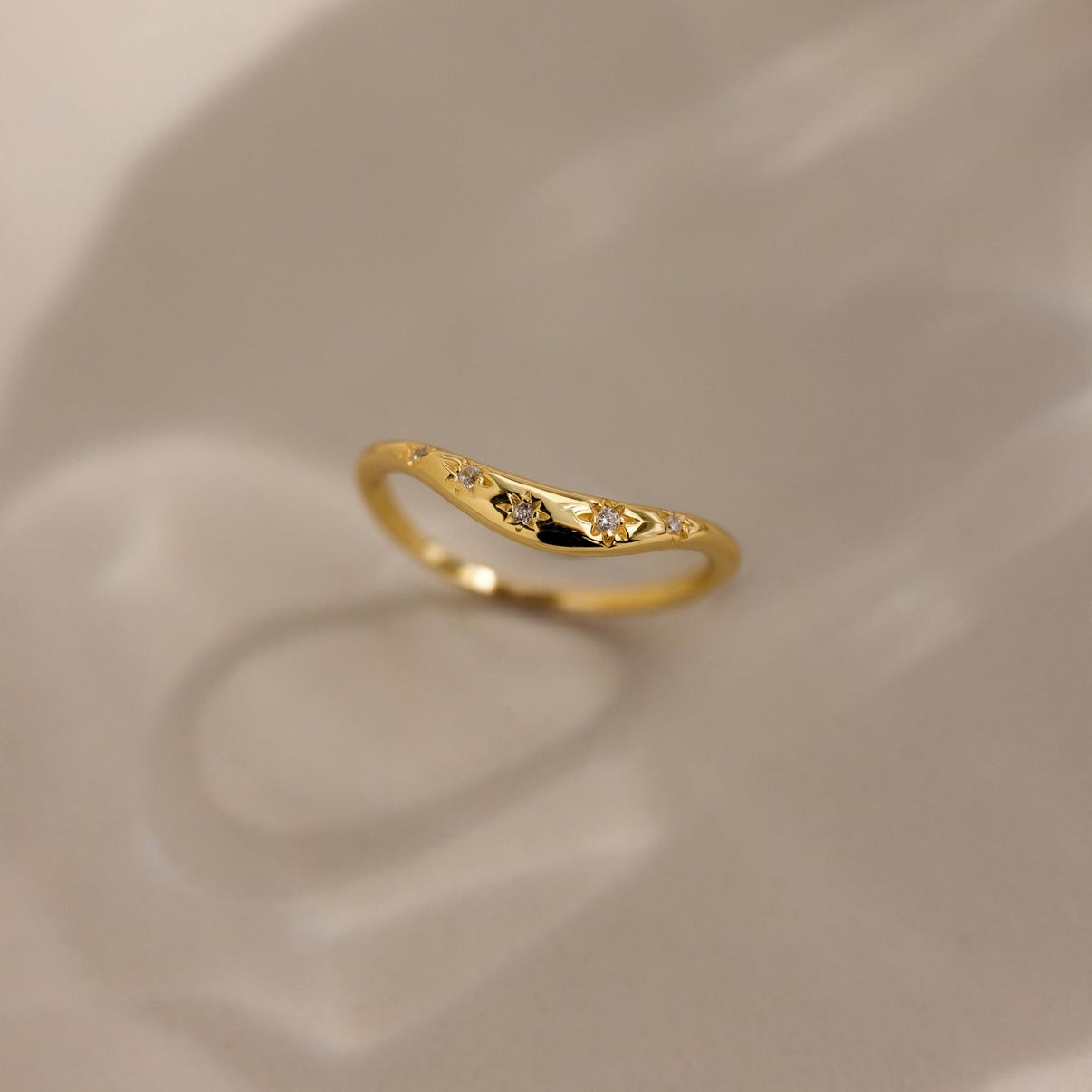 Verleihen Sie Ihrer Ringkollektion mit unserem North Star Curve Dome Ring einen Hauch von Magie. Funkelnde Diamantsterne tanzen auf einem sanft geschwungenen Kuppelring. Entworfen für Sternengucker und Träumer, vereint er kosmischen Charme und moderne Eleganz auf perfekte Weise.